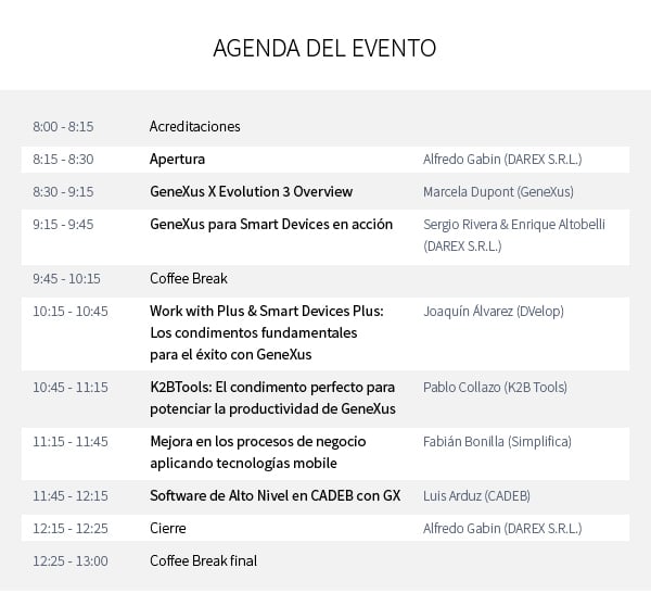 El evento es una co-organización de Darex, Cadeb Y GeneXus International y se realiza para presentar la nueva GeneXus X Evolution 3. Además habrá diferentes conferencias sobre Smart Devices.
