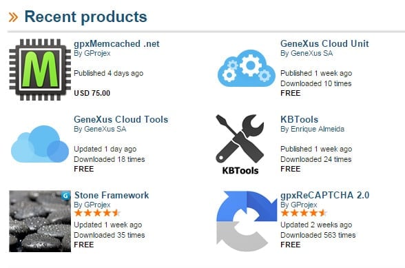 En esta tienda virtual, los integrantes de la Comunidad GeneXus pueden encontrar todos aquellos productos que complementan la tecnología GeneXus, y que sean de utilidad para los demás miembros, los cuales estarán organizados por categorías, fecha de publicación o por sus calificaciones: