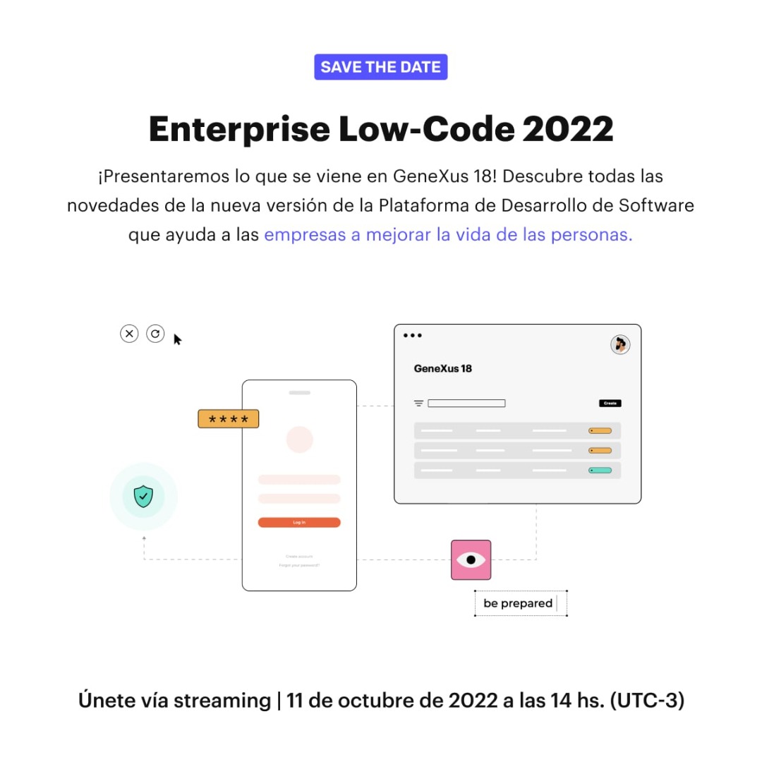 Save the Date → 11 de octubre ¡GeneXus LIVE Enterprise Low-Code 2022!