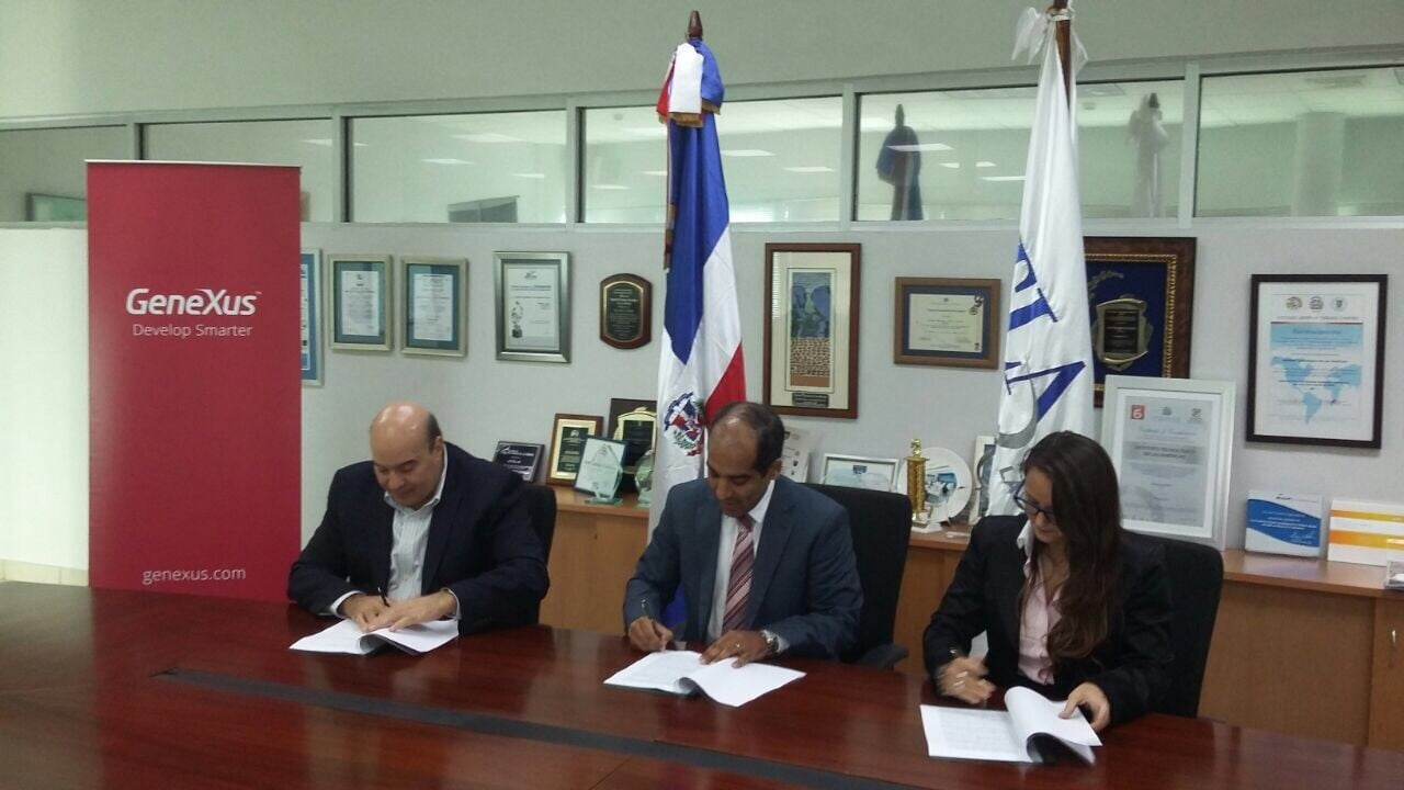 El convenio fue efectuado por el rector del ITLA, Ing. José Armando Tavarez, Lic. Marcela Dupont en representación de GeneXus y el Ing. Virgilio Albert Presidente de Multicómputos, representante oficial de GeneXus en el país.