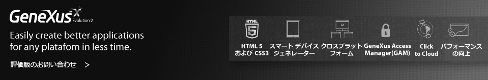 GeneXus™ は GeneXus S.A. の登録商標です。また、当サイトに掲載されているその他の商標は、すべてそれぞれの所有者の所有物です。
